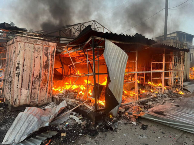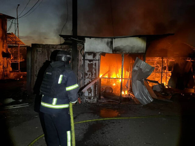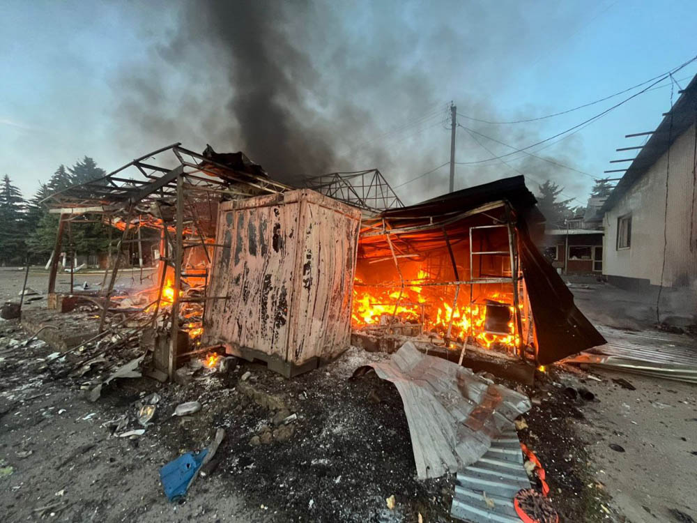 Удар прийшовся по території ринку. Внаслідок влучань виникла пожежа торговельних павільйонів на площі близько 500 кв. м., яку ліквідували вогнеборці. Окрім цього, пошкоджено будівлю поштового відділення та інші торговельні об’єкти.
