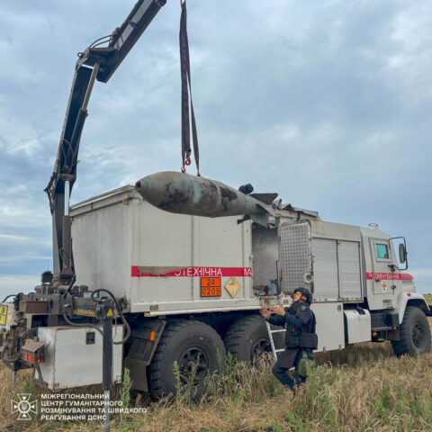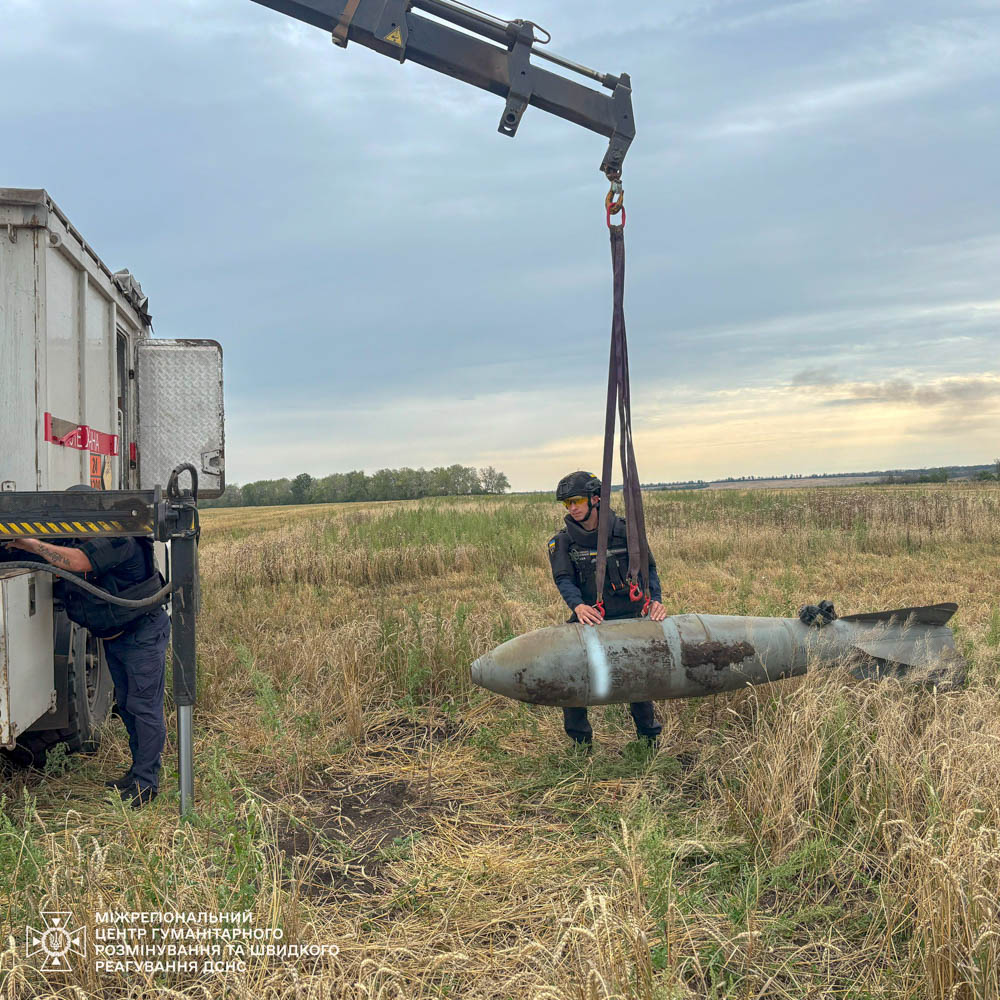 Сапери ДСНС знешкодили нездетоновану авіаційну бомбу поблизу Куп’янська Харківської області.