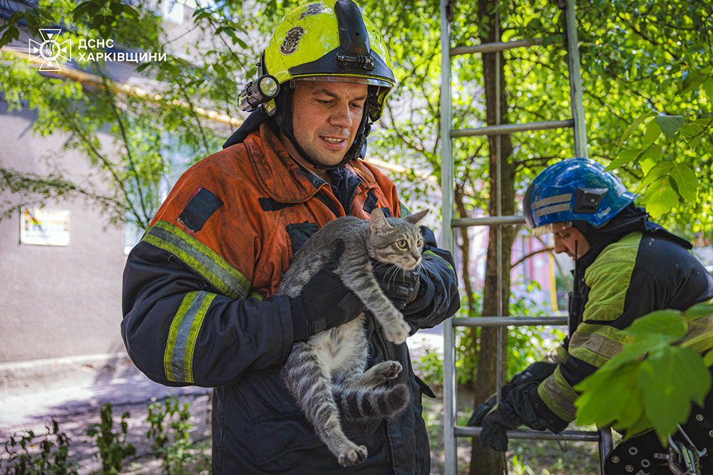 «Наші фахівці, прибувши на місце, за допомогою трьохколінної драбини обережно зняли наляканого пухнастика. Після порятунку малюка нагодували та передали в добрі руки небайдужих харків’ян», – повідомили в ДСНС.