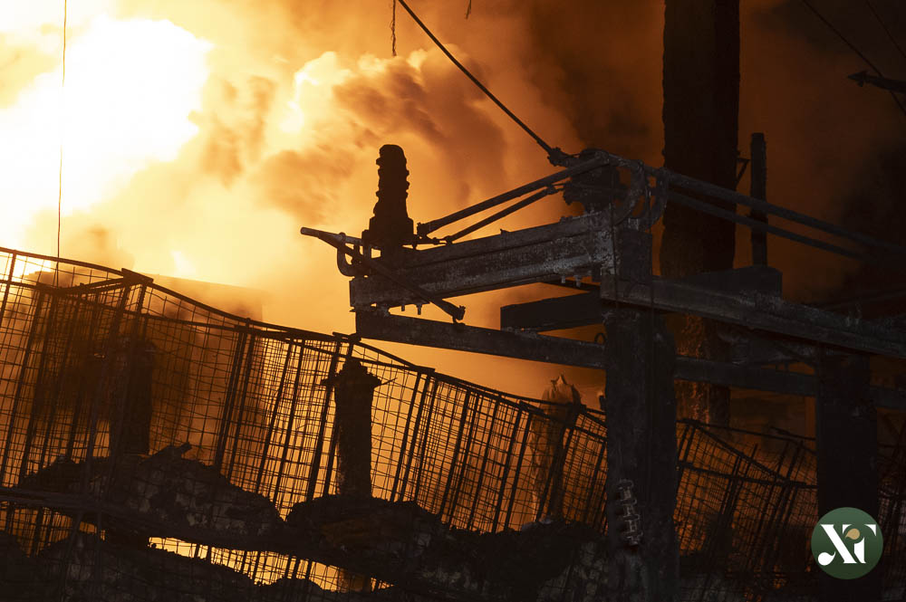 Пожежа на підстанції в Харківській області, яка не дочекалась захисту від дронів. Фото: Харків Times
