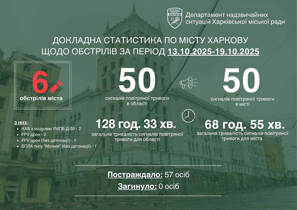 Протягом минулого тижня росія шість разів атакувала Харків. Російські керовані авіабомби та дрони, включно з FPV, били по цивільних об’єктах у Шевченківському, Київському та Салтівському районах міста.
