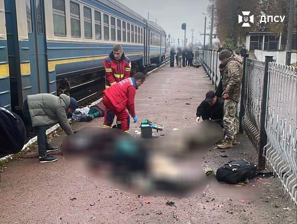 Сьогодні, 24 жовтня, мешканець Харкова «невідомим вибуховим пристроєм» підірвав прикордонний наряд та ще десятьох цивільних людей у контрольованому прикордонному районі на залізничній станції Овруч Житомирської області. Жінка-прикордонниця та ще двоє цивільних загинули.