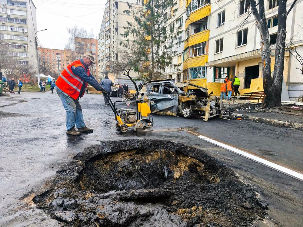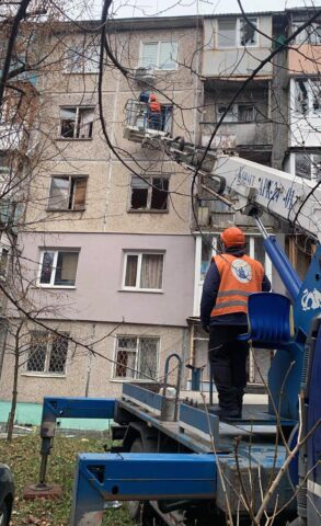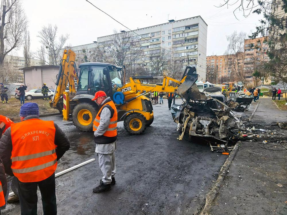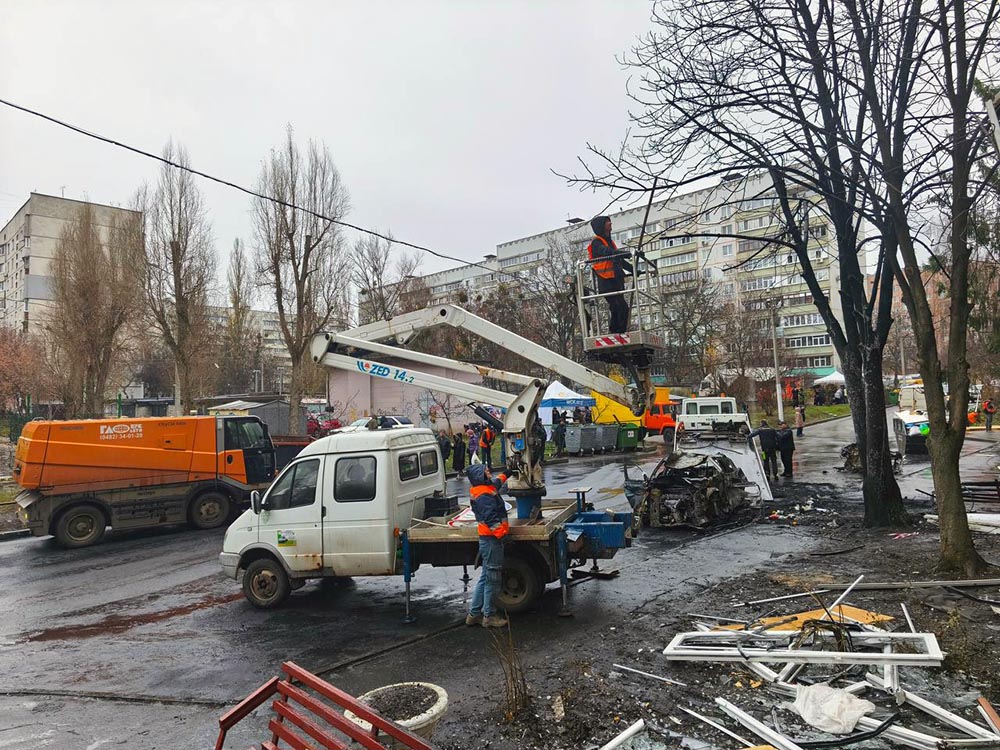 Бригади комунальних служб та підприємств працюють на місці російських ударів ще з ночі – усувають небезпечні пошкодження, закривають контури, намагаючись зробити все якомога швидше з огляду на погодні умови.