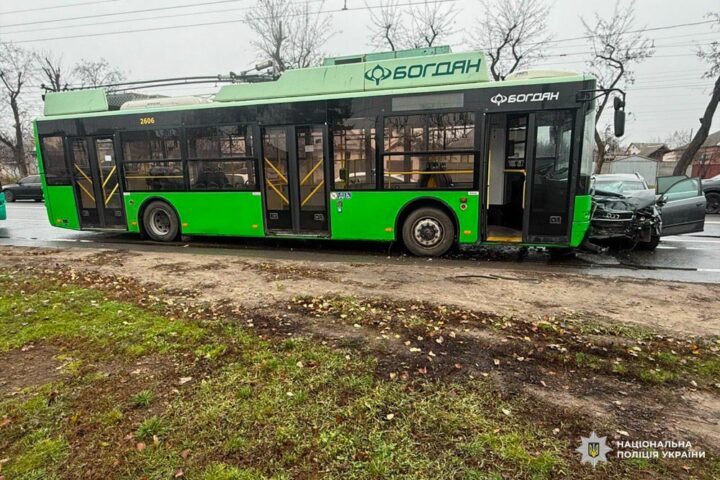 У Харкові вранці 1 грудня автівка врізалася у тролейбус: постраждали три людини.