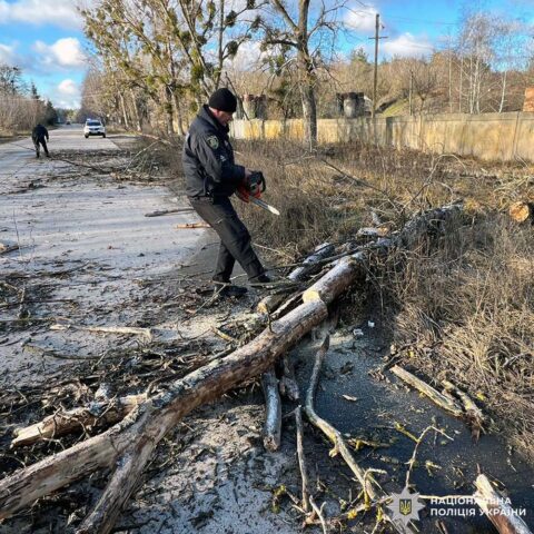 «Отримавши повідомлення, поліцейські офіцери Нововодолазької громади оперативно прибули на місце події. З метою недопущення заторів і забезпечення безпеки дорожнього руху правоохоронці власними силами, за допомогою бензопили, розпиляли дерево та звільнили проїзну частину», – розповіли у поліції.
