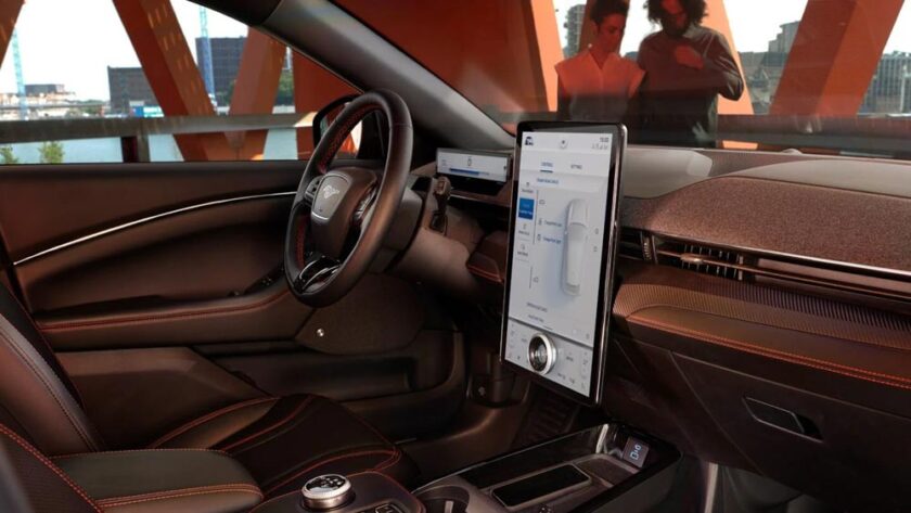 Інтер’єр Mach-E побудований навколо ідеї інтелектуальної зручності. Велика колісна база забезпечує просторий салон для п’яти пасажирів, а багажник має дві зони — задню та передню, що додає практичності у повсякденному користуванні.
