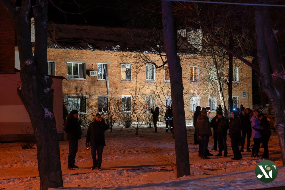 Комунальні служби усувають наслідки російської атаки, прибирають бите скло, уламки на проїжджій частині та біля пошкоджених житлових будинків, зашивають щитами вибиті вікна.
