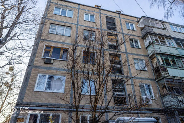 Рятувальники ДСНС Харківщини провели обстеження після обстрілу. Було зафіксовано пошкодження скління вікон у багатоквартирних будинках. Також пошкоджень зазнали легкові автомобілі, що були припарковані поруч із місцем влучання.