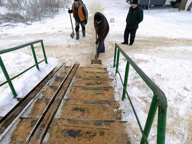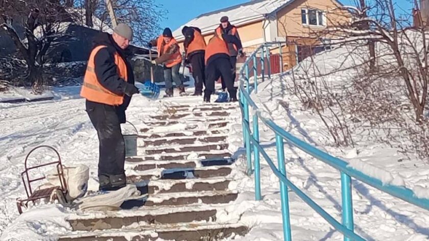 Працівники КП «Благоустрій» розчищають містки, сходинки, пішохідні переходи у приватному секторі міста й обробляють їх протиожеледними засобами.