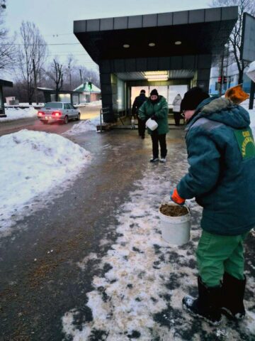 Бореться з ожеледицею і обласний центр. Як повідомили Харків Times у Харківській мерії, зранку працівники КП «Шляхрембуд» посипають піщано-сольовою сумішшю прибудинкові території, пішохідну та проїжджу частини.