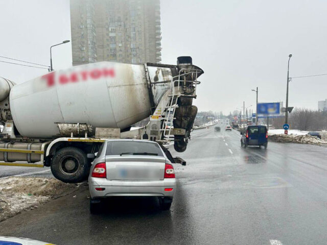 Бетонозмішувач зіткнувся з легковим автомобілем ВАЗ на вулиці Клочківській у Харкові. ДТП сталося близько 29 січня близько 09:00.