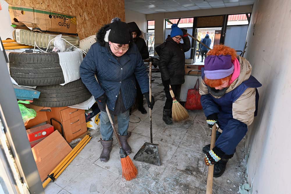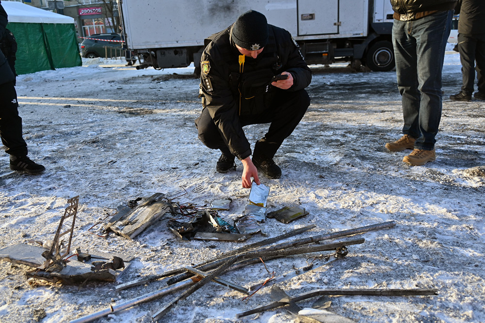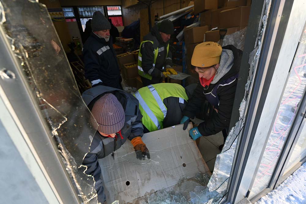 На місці були пошкоджені кілька торгівельних точок. Люди вже прибирають наслідки влучання російського дрону. Експерти вивчають та збирають його уламки.