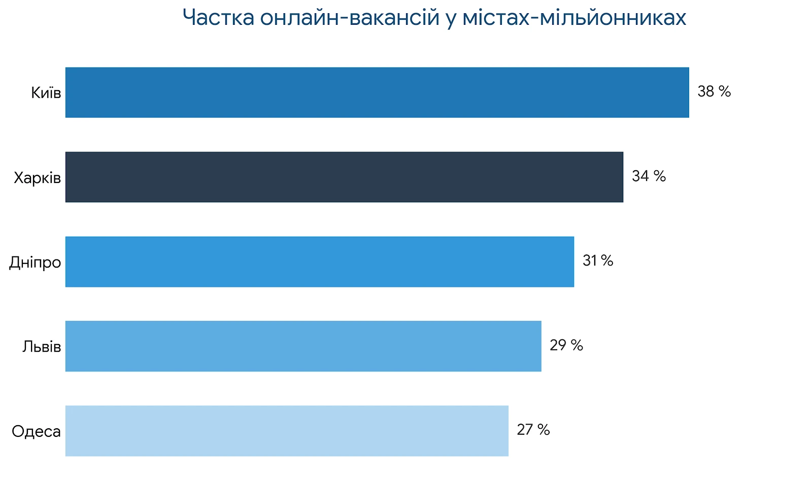 - понад 58 % шукачів у великих містах свідомо обирають віддалену зайнятість;