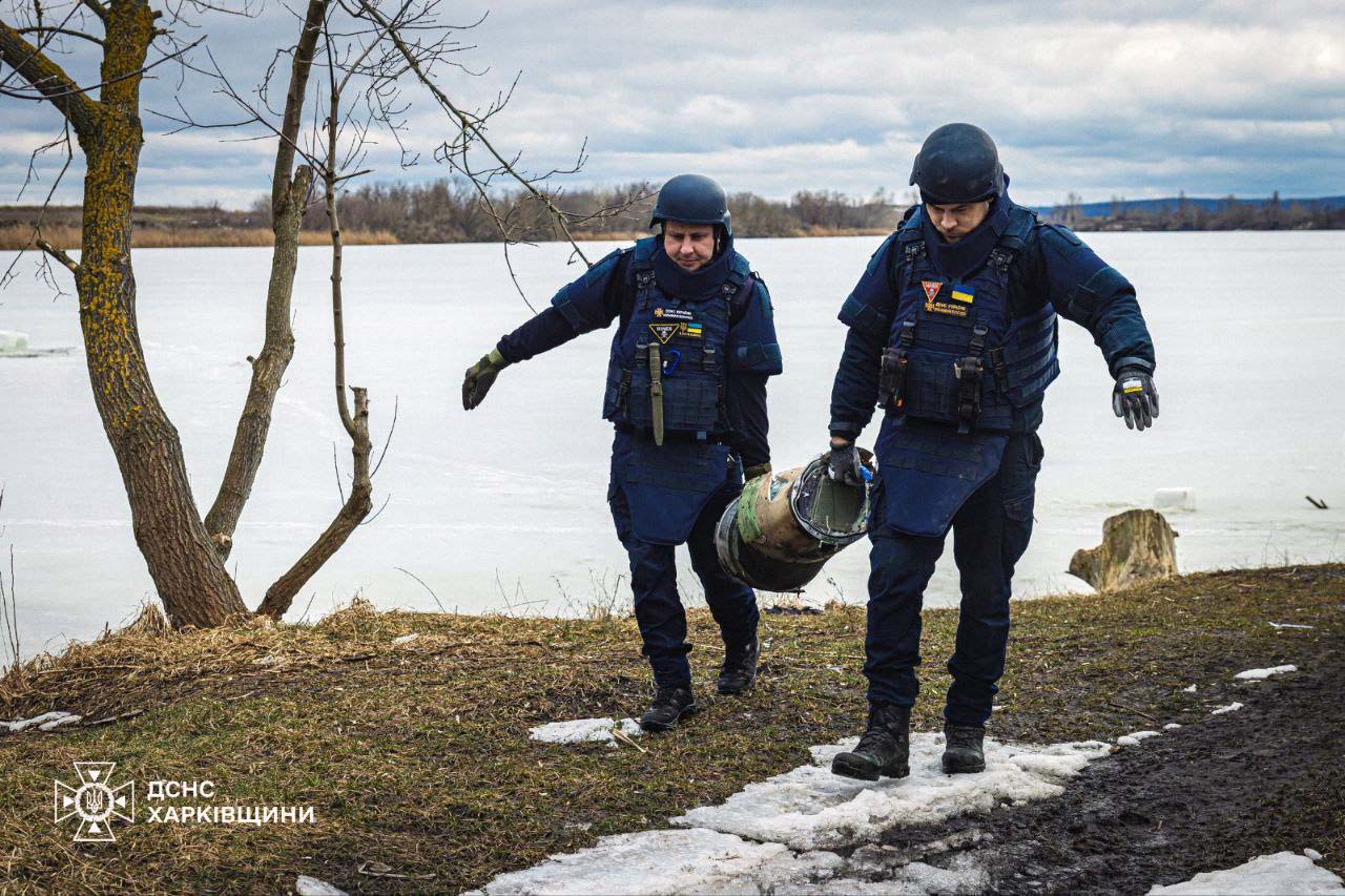Сьогодні, 4 березня, з водойми в Основ’янському районі Харкова вилучили безпечні залишки снаряду російського РСЗВ. Про те, що снаряд влучив у воду, розповіли місцеві мешканці.
