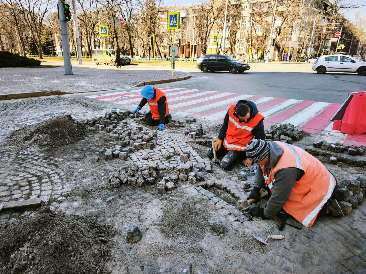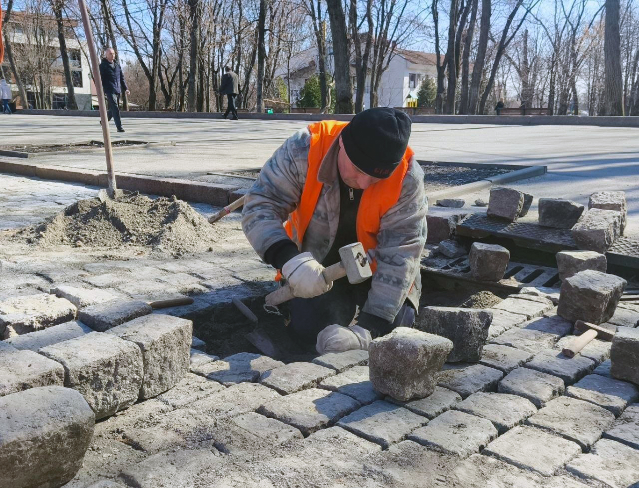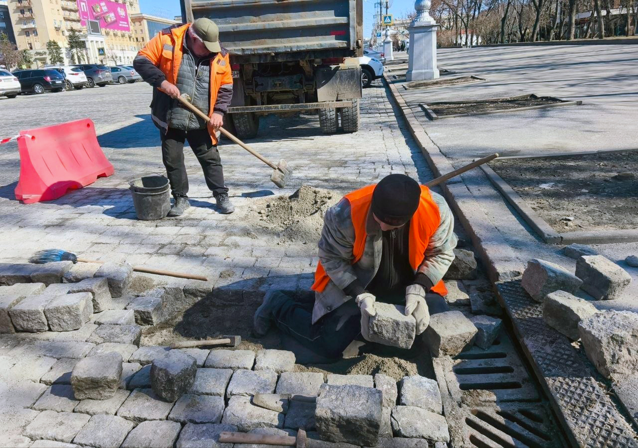 На площі Свободи у середмісті Харкова фахівці КП «Шляхрембуд» проводять поточний ремонт кам’яного покриття.