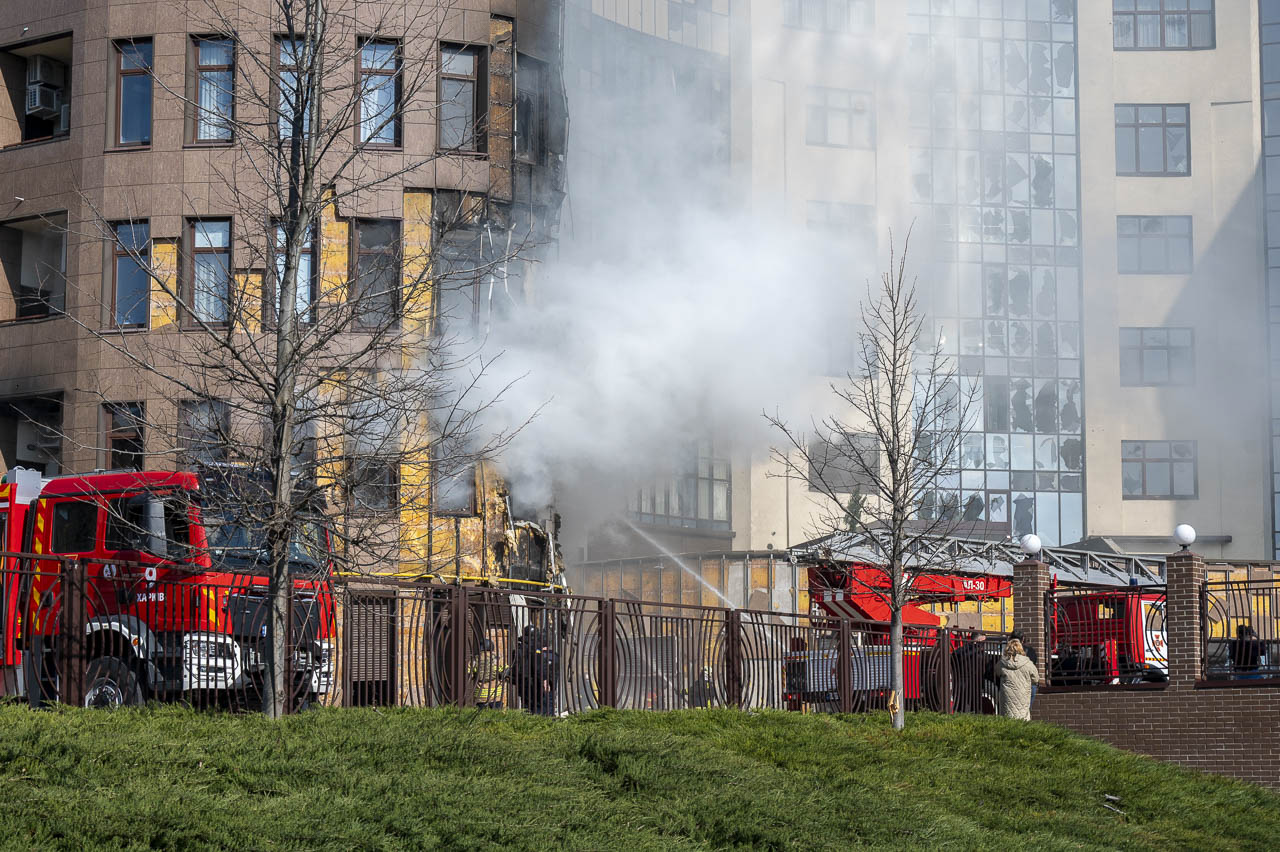 Як повідомили Харків Times у Головному управлінні ДСНС області, пожежа на місці влучання ворожого безпілотника у житлову багатоповерхівку охопила площу 200 кв. метрів та була повністю ліквідована о 17:19.