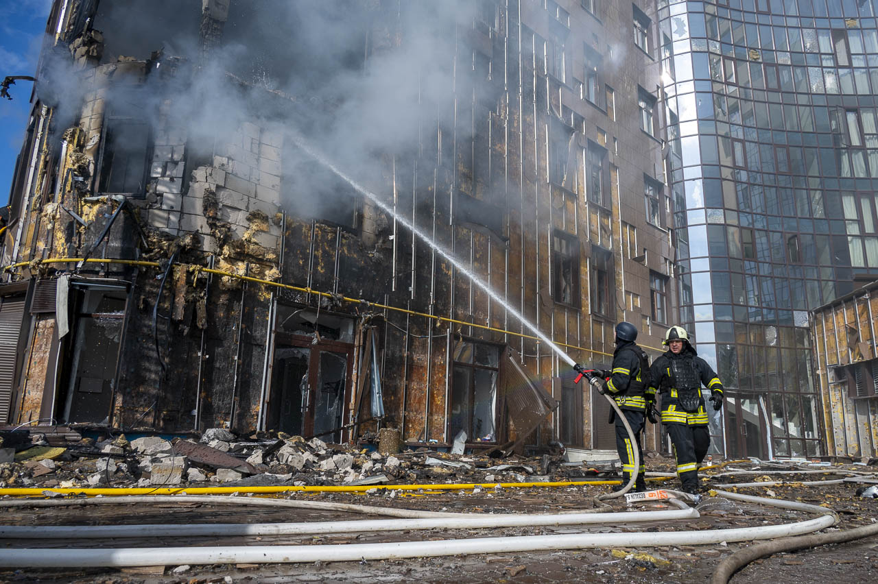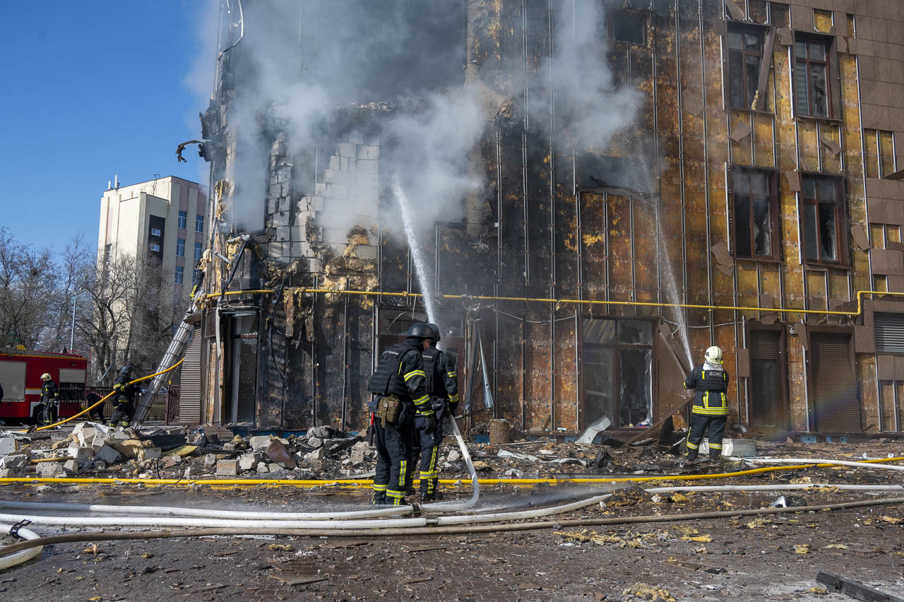 Від початку доби до середини дня сьогодні, 2 квітня, 11 російських безпілотників влучили по шести локаціях у Харкові. Пошкоджень зазнало цивільне підприємство та житлова багатоповерхівка, що перенесла пряме влучання російського БпЛА, у Київському районі міста. На місцях влучань виникли пожежі. Постраждали дві немолоді цивільні жінки 61 та 52 років.