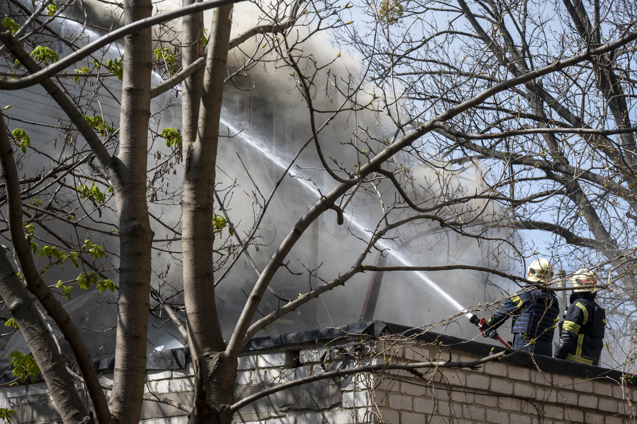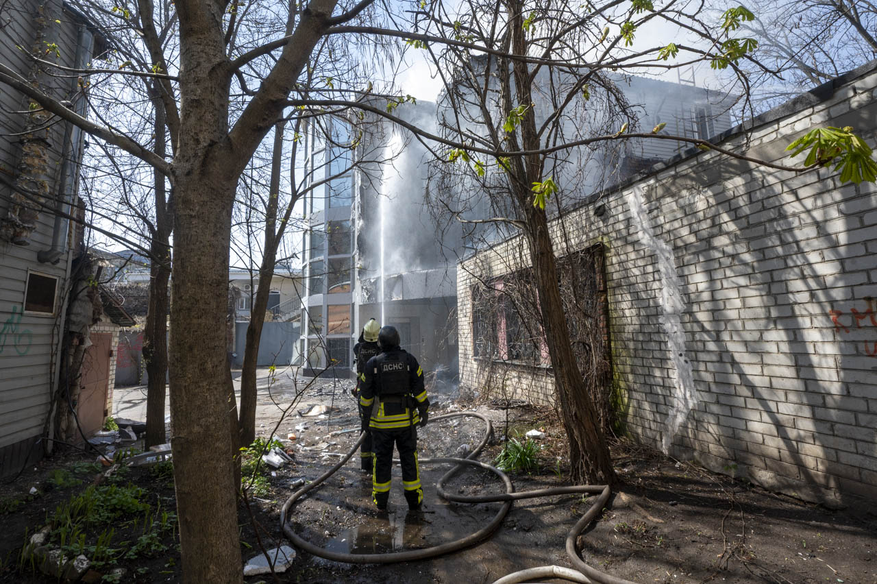 Рятувальники ДСНС ліквідували пожежу в середмісті Харкова, яка виникла внаслідок падіння російського БпЛА, попередньо Італмас.