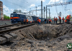 Читати даліПрацівники “Укрзалізниці” відновлюють пошкоджені російською ракетою колії (фото)