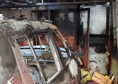 На проспекте Науки пожар уничтожил частный гараж вместе с автомобилем (фото)