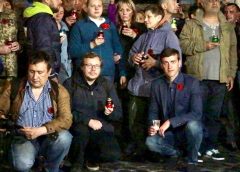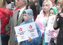 Активисты встретили колонну «Бессмертный полк» кричалками “Слава Украине! Героям слава!”, “Врагам Украины – смерть, смерть, смерть!”