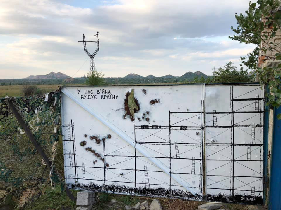 Работы харьковского художника Гамлета Зиньковского появились на передовых позициях Вооруженных сил Украины в пригороде Донецка Марьинке.