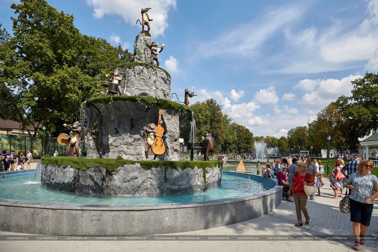 Возле нового озера и входа в закрытый на длительную реконструкцию зоопарк построен декоративный фонтан со светомузыкой в форме скалы, на которой на разных музыкальных инструментах играют обезьяны.