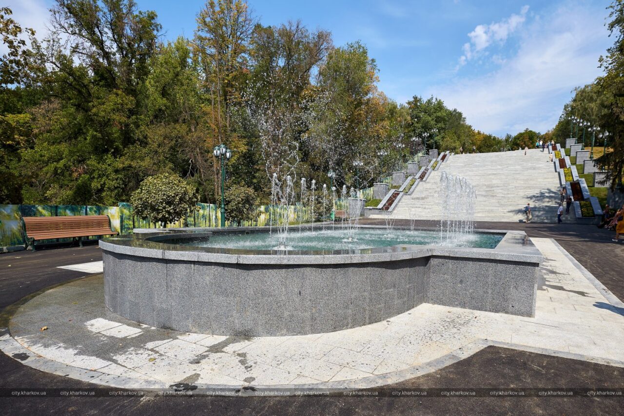 Ко Дню города в саду Шевченко после реконструкции открыли лестницу на месте «Каскада» и новые фонтаны.