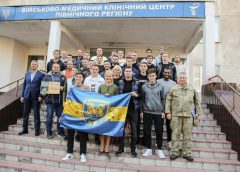 Поздравляя военных, харьковская футбольная команда передала госпиталю сертификат на новое аудио и видео оборудование.