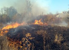 На краю улицы горели три гектара сухой травы.