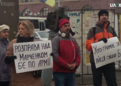 Возле палатки «Все для победы» собралось несколько десятков активистов несогласных с заключением под стражу военного Дмитрия Марченко.