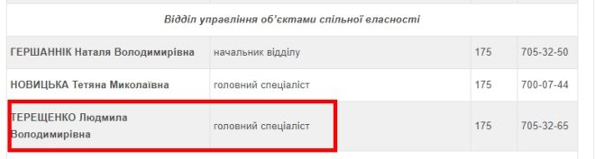 На сайте облсовета Терещенко значится главным специалистом отдела Управления объектами общей собственности Управления коммунальной собственности. Однако никаких приказов о назначении на сайте госоргана нет. А в измененной декларации от 24 августа 2019 Терещенко подтверждает свое место работы.