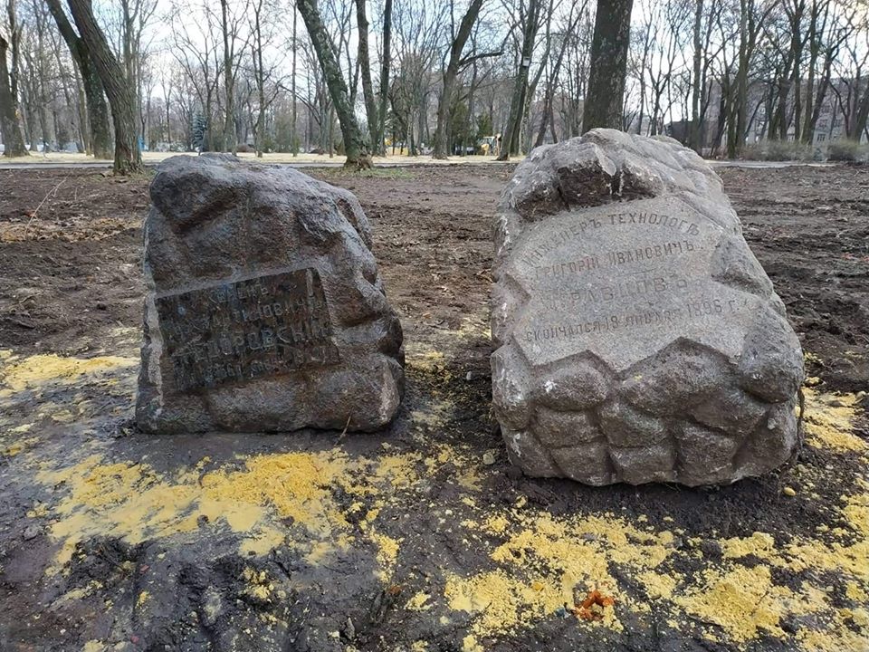 В результате раскопок у могильный плиты Федоровскому Сергею Константиновичу, которая сохранилась в Молодежном парке (1 городское кладбище), были найдены два старинных памятника.