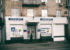 На офисе «Оппозиционной платформы — За жизнь» в Харькове появились надписи: «Враги Украины», «Враги Майдана».
