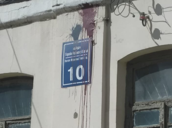 Информация о том, что на майдане Героев Небесной Сотни неизвестные облили краской адресные таблички, была обнаружена в ходе мониторинга сети Интернет 17 апреля около 14:30. С официальными заявлениями в полицию никто не обращался.