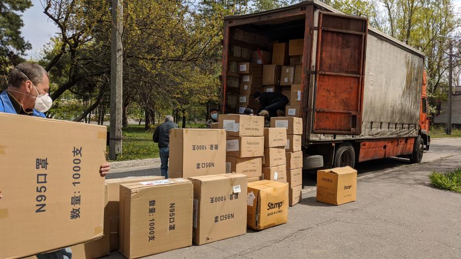 «В грузе, прибывшем сегодня из Киева, — большое количество защитных масок и респираторов — более 12 000, а также более 5000 защитных костюмов», — сообщил председатель ХОГА Алексей Кучер.