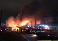 На момент прибытия спасателей в двухэтажном торговом павильоне горели товары на площади 200 кв.м.