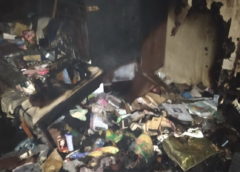 Поздно вечером загорелась квартира на первом этаже жилого дома.