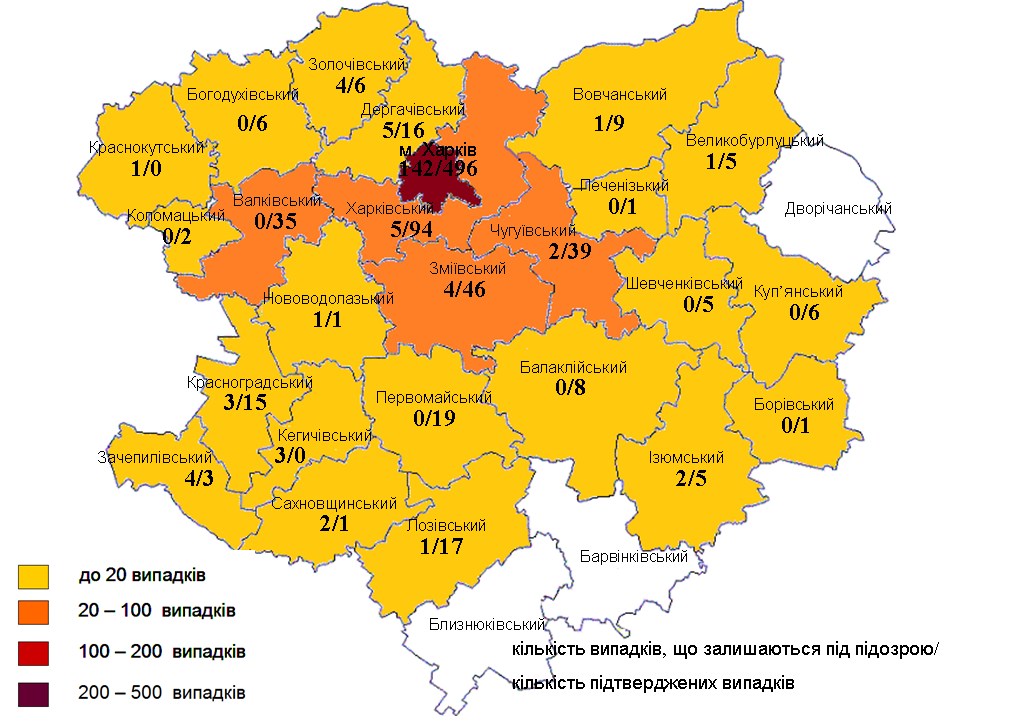 Наибольшее количество заболевших зарегистрировано в Харькове — 496 случаев (+18 за сутки).