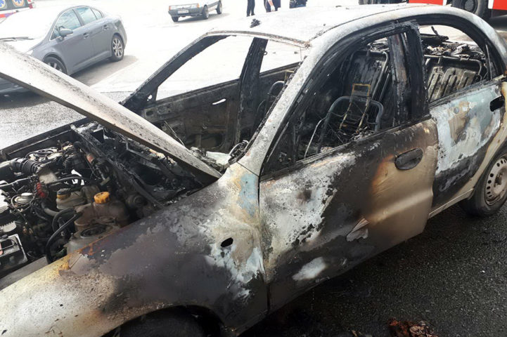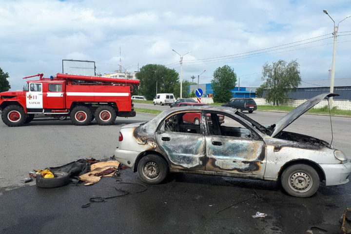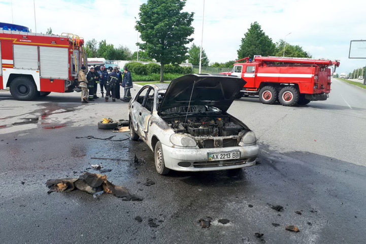 Пожар в автомобиле Daewoo Lanos произошла утром 31 мая у «Будмен» на проспекте Льва Ландау, 2/2.