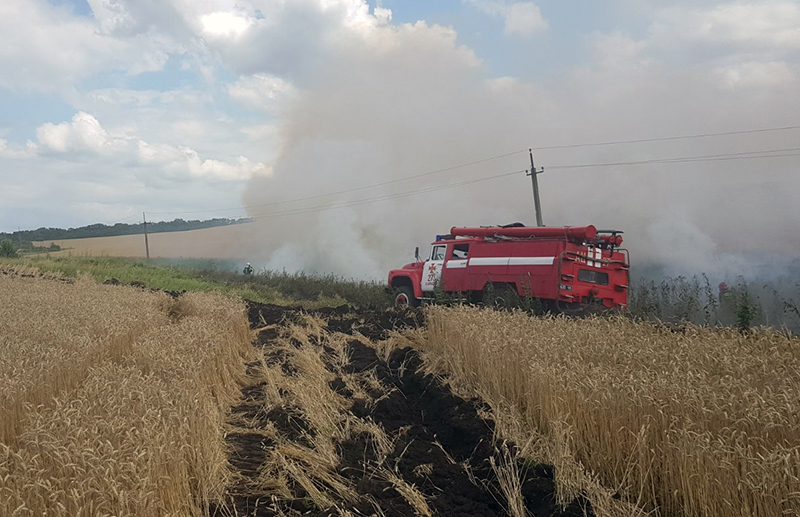 «По прибытии на место пожара стало известно, что на поле горела пшеница на корню», — говорится в сообщении ГосЧС.