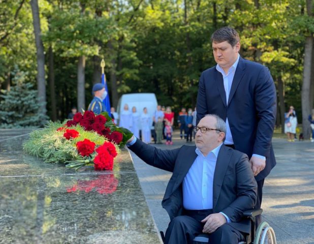 23 августа — день освобождения города Харькова от немецко-фашистских оккупантов начался с с возложения цветов к стеле на Мемориале Славы в Лесопарке.