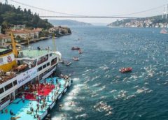 Восемь пловцов преодолели дистанцию в 6,5 км, переплыв из Азии в Европу.