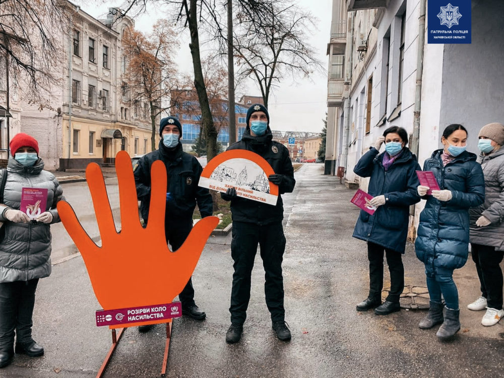 Сегодня, 25 ноября, в рамках всеукраинской акции «16 дней против насилия» патрульные провели тематические мероприятия «Разорви круг насилия — Харьков свободный от домашнего насилия».