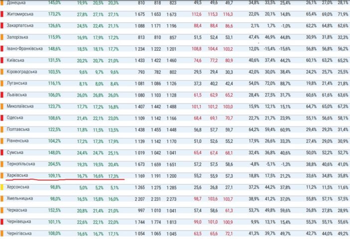 Всего в «оранжевой» зоне — 15 областей. В их числе соседние с Харьковской — Днепропетровская, Донецкая, Луганская и Полтавская.