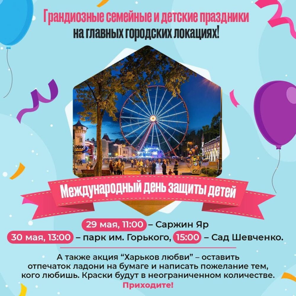 Празднование Дня защиты Детей в Харькове продлится с 29 мая по 7 июня. Мероприятие для детей и взрослых проведут на ключевых локациях во всех районах города.