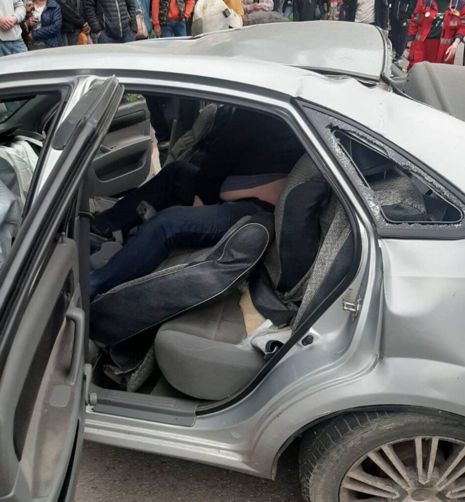 В Нацполиции области воссоздали схему этой аварии. По информации правоохранителей, Chevrolet Lacetti во время движения по проспекту Юбилейном столкнулся с автомобилем Mercedes-Benz GLE. В результате удара Chevrolet отбросило к обочине, где он врезался в припаркованные KIA и Ford Transit.