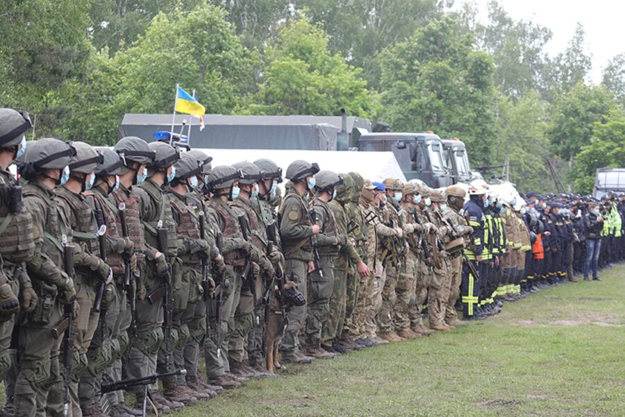 5 июня в селе Писаревка Харьковской области, в 25 километрах от границы с РФ, представители нескольких ведомств провели масштабные учения. Учились отражать атаки противника и взаимодействовать друг с другом около 500 нацгвардейцев, полицейских и спасателей.