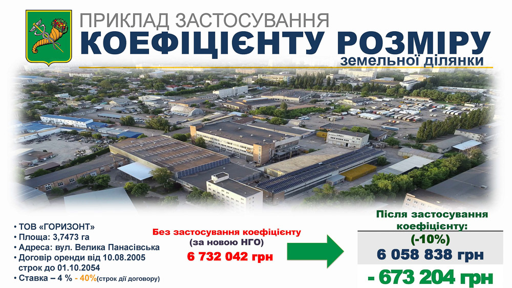 В целом уменьшение ставок арендной платы за землю составит для предпринимателей от 25 до 46%, что будет выражаться в сотнях тысяч гривен экономии в год.