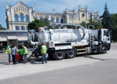 Работы ведутся и в других местах города. С начала года коммунальщики прочистили 374 км канализационных коллекторов.